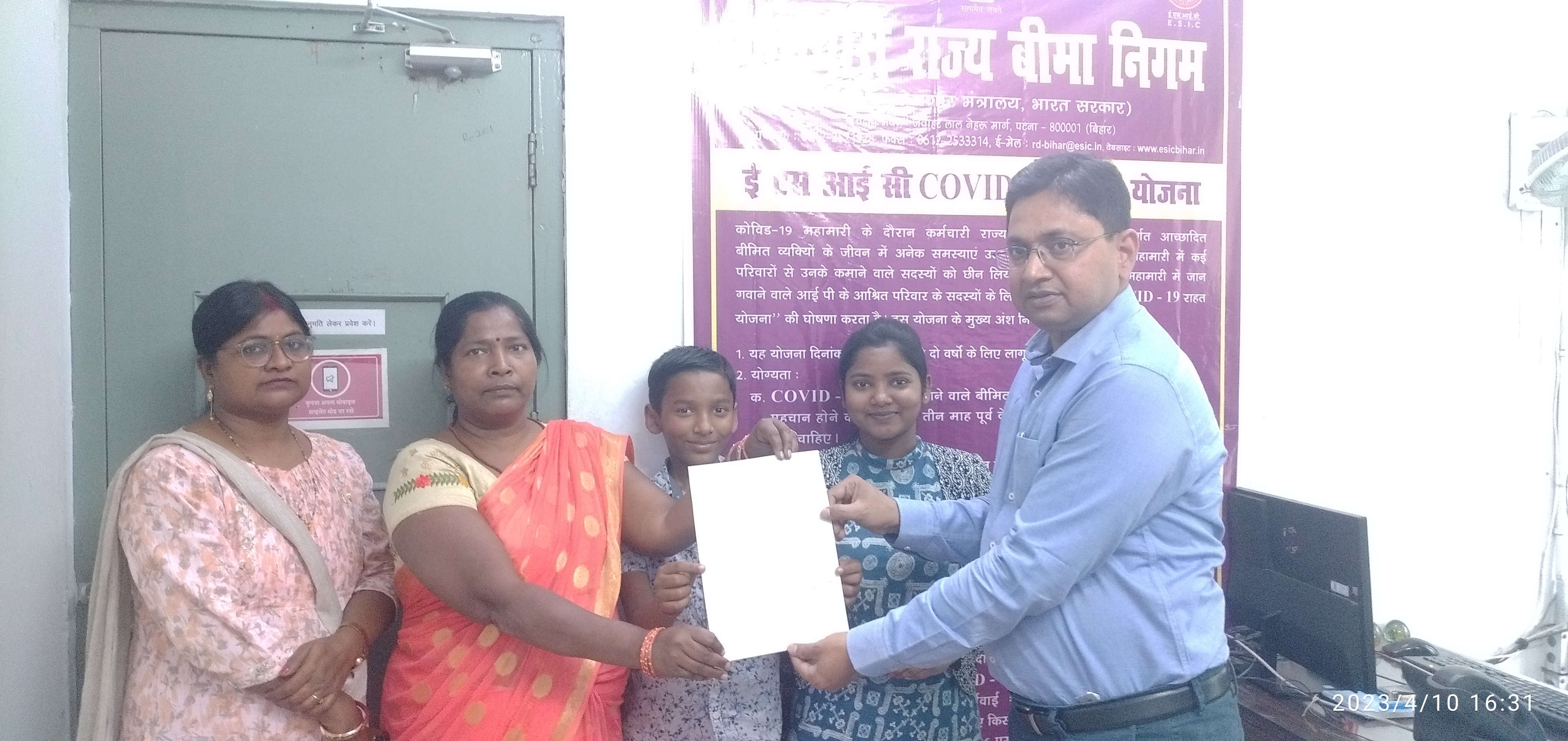 10 अप्रैल 2023 कोविड-19 रिलीफ स्कीम के तहत बीमित के आश्रितों को क्षेत्रीय निदेशक द्वारा हितलाभ प्रदान किया गया