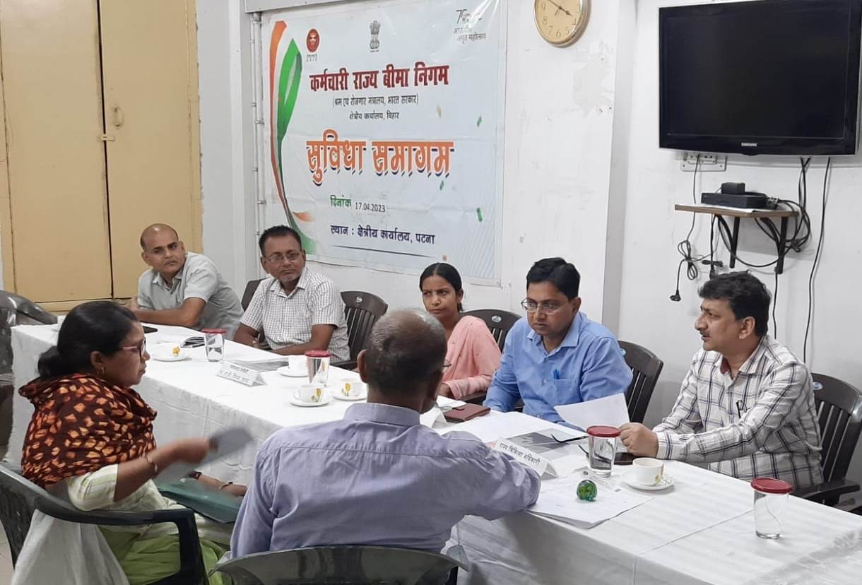 17 अप्रैल 2023 को ई.एस.आई.सी. क्षेत्रीय कार्यालय, पटना में क्षेत्रीय निदेशक की अध्यक्षता में विशेष सुविधा समागम का हुआ आयोजन