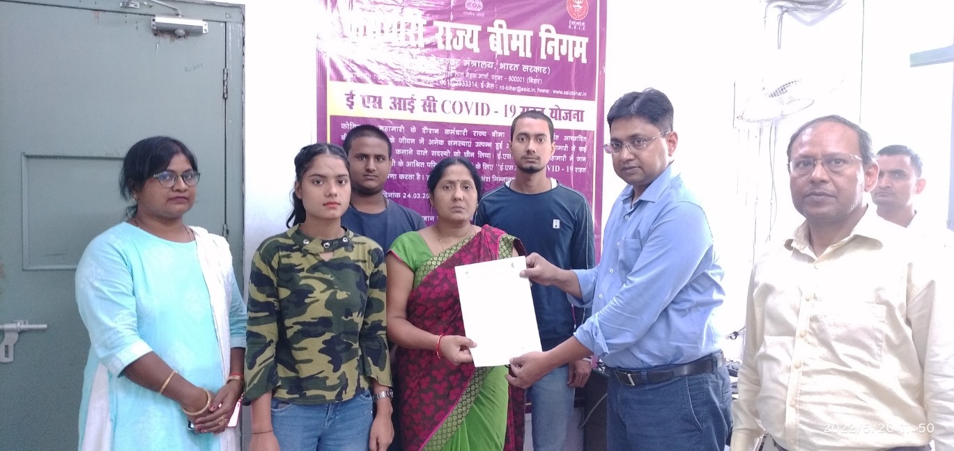 24 अगस्त 2022 को क्षेत्रीय कार्यालय में क्षेत्रीय निदेशक महोदय द्वारा बीमित के आश्रितों को कोविड -19 रिलीफ स्कीम के तहत हितलाभ प्रदान किया गया